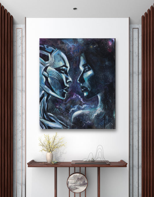 We love our new painting „The Infinite Mind“! The colors are truely glowing and the expression of the mane subject is so dreamy and powerful.